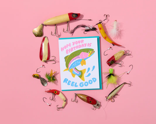 Trout Reel Good Fish Birthday Letterpress Card