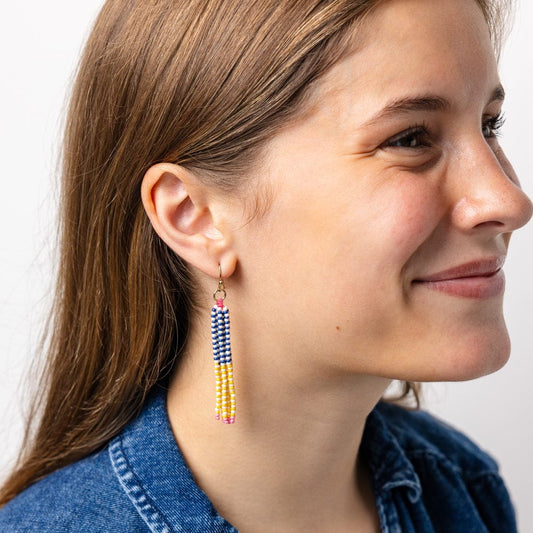 Claudia Vertical Stripe Beaded Fringe Earrings Multicolor