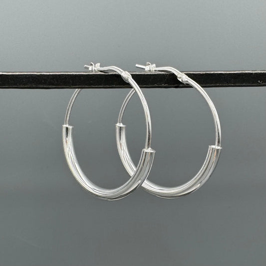 Sterling Silver Large Raised Bar Hoops