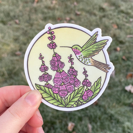 Hummingbird & Foxglove Vinyl Sticker