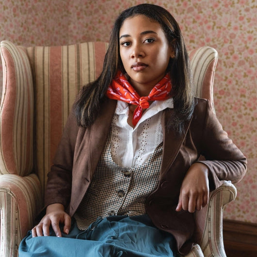 Beth may be Orchard House’s most quiet resident, but this bandana is as bright and cheery as her presence is to those who know and love her best. Whimsical bows flit across a bold background like musical notes from Beth’s piano, and the effect is just as sweet. What a treasure it is to have a sister so peaceful and devoted that just being near her makes you feel you can go out into the big world and do or become anything! This bandana is a little bit of tenderness and a big shot of confidence all rolled into one.