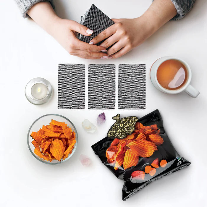 Fred’s Pantry Moths bring a little magic to your midnight snacks. This stylish set of bag clips is designed to keep your snacks sealed and shelves looking chic. Each set includes four enchanting clips in two celestial shapes, adorned with shimmering gold details and crafted from durable ABS plastic with strong stainless steel springs. Comes packed on a gift-ready backer card with gold foil accents.